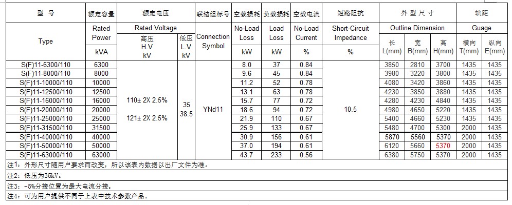 110kV 三相雙繞組無勵(lì)磁調(diào)壓電力變壓器技術(shù)數(shù)據(jù)表