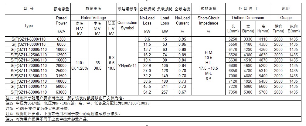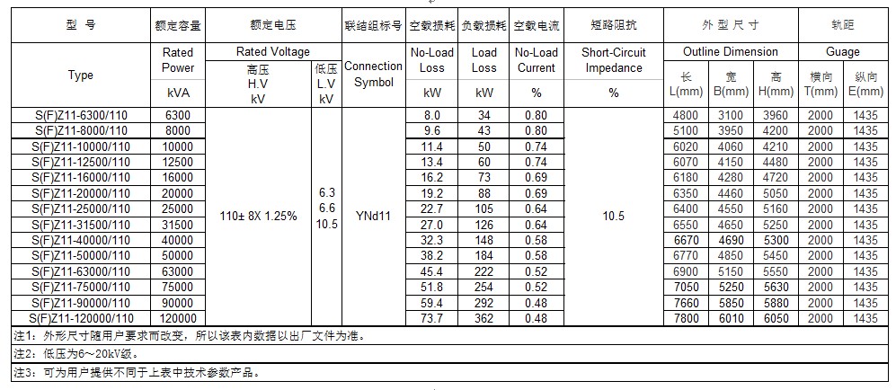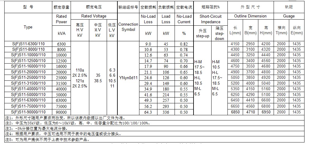110kV 三相雙繞組有載調(diào)壓電力變壓器技術(shù)數(shù)據(jù)表