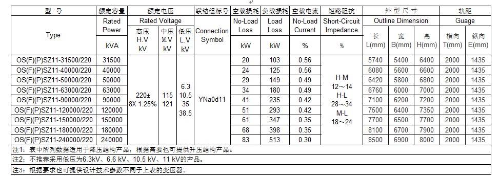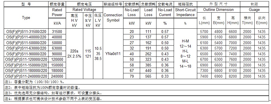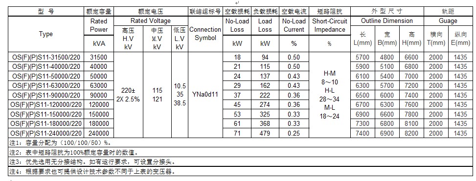 220kV 三相三繞組有載調(diào)壓電力變壓器技術(shù)數(shù)據(jù)表