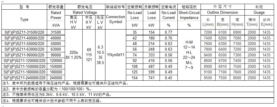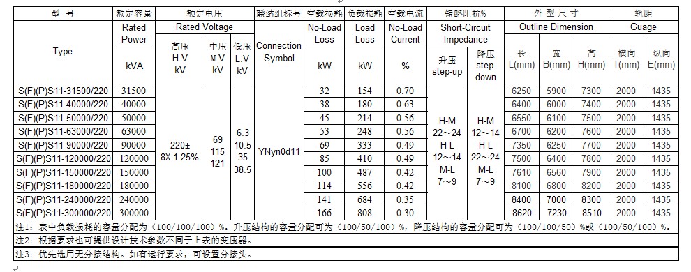 220kV 三相三繞組無(wú)勵(lì)磁調(diào)壓電力變壓器技術(shù)數(shù)據(jù)表